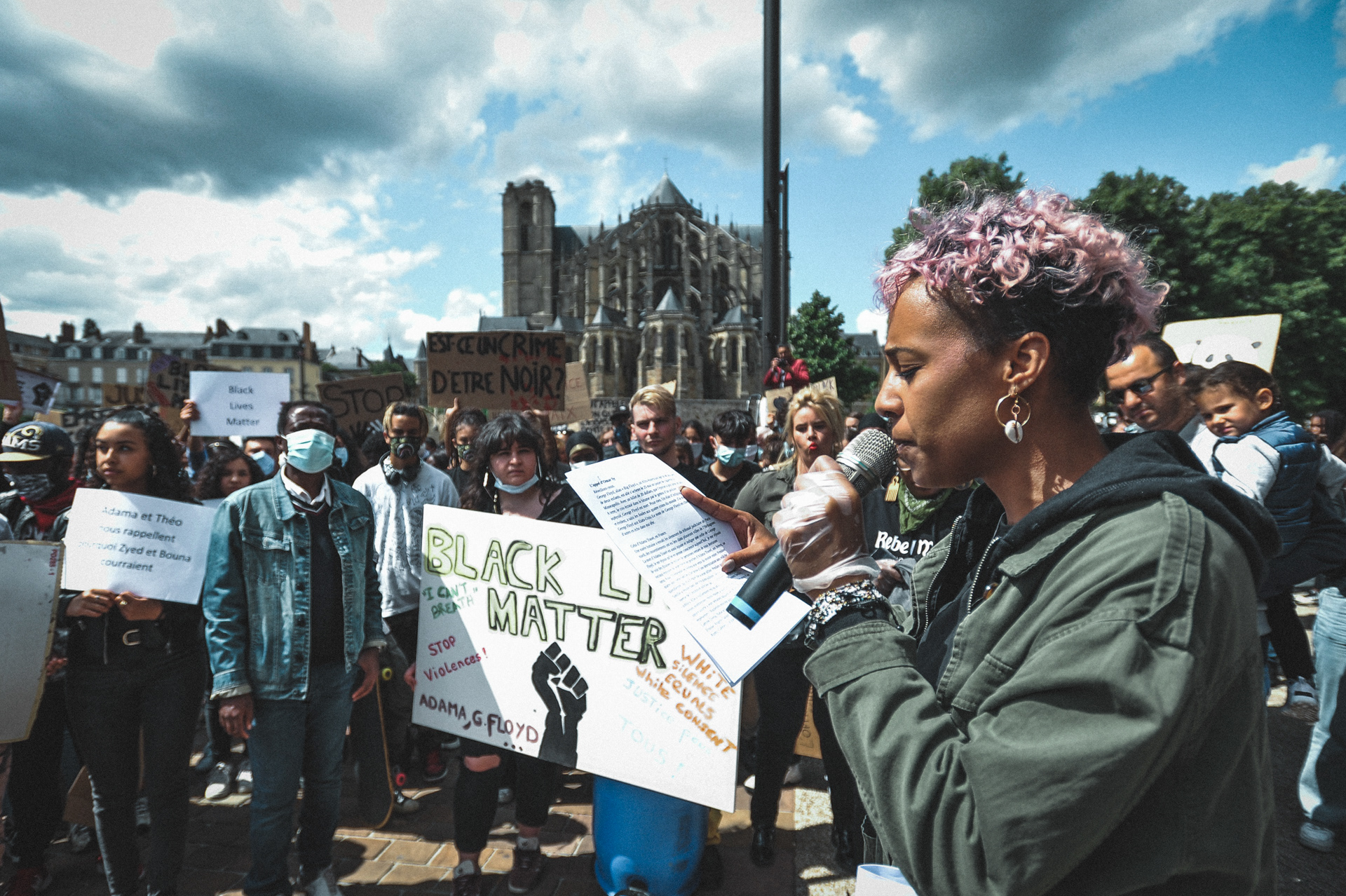 Suite à l'homicide d'un homme afro-américain par un agent de police du Minnesota, largement médiatisé à l'échelle mondiale via les réseaux sociaux et les médias, des manifestations et rassemblements ont eu lieu en France et dans le monde. Les manifestants présents ici au Mans, dénonçaient les violences subies par les personnes racisées de la part des forces de l'ordre, la discrimination dont elles sont victimes encore aujourd'hui, ainsi que les condamnations légères ou inexistantes des auteurs de ces actes, faisant le parallèle avec plusieurs affaires similaires ayant eu lieu en France.