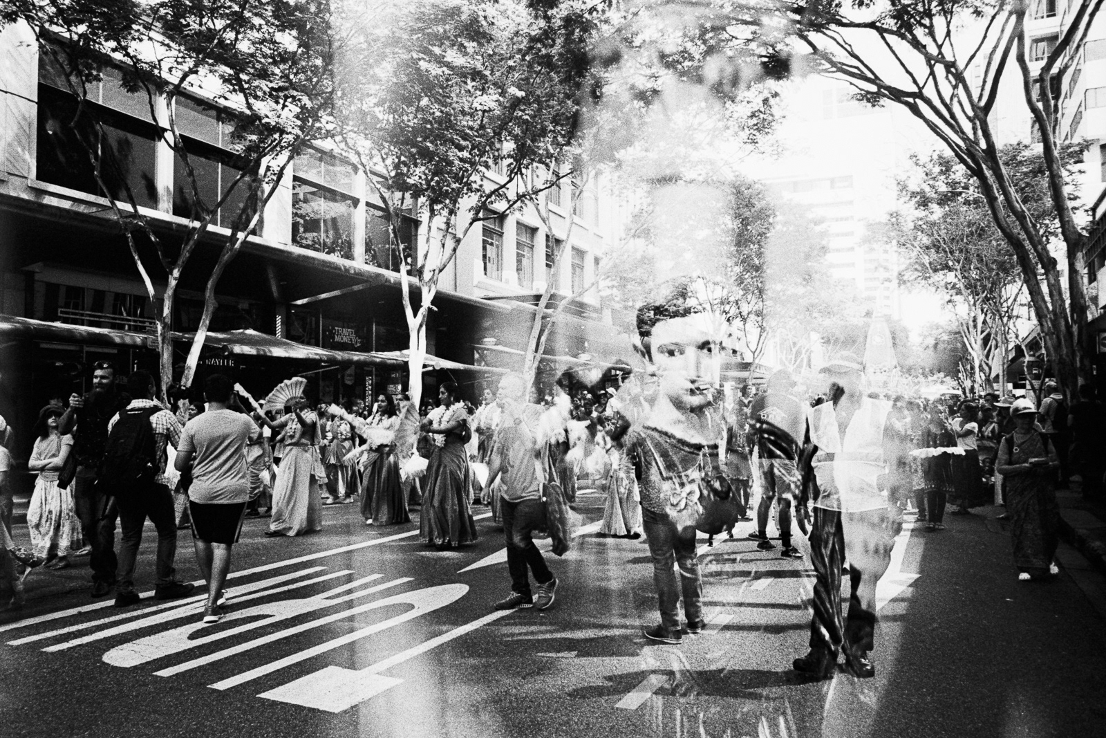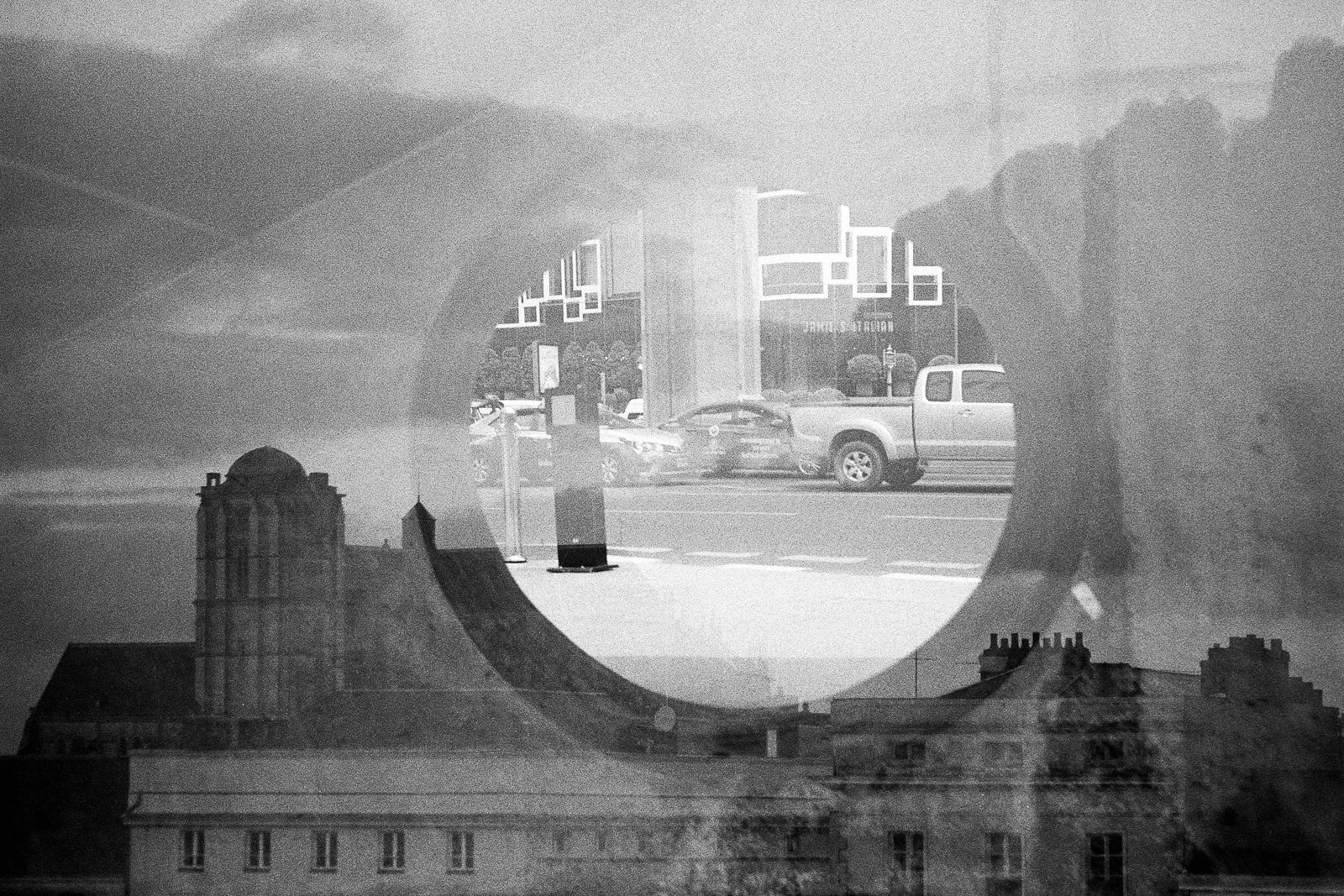 Ces doubles expositions sont le fruit de collaborations avec des photographes du monde entier avec qui j'ai eu la chance d'échanger par Instagram. C'est en exposant une première fois la pellicule avant de l'envoyer par la poste au photographe interposé avant qu'il ne la re-expose à son tour, chacun a l'endroit du monde ou il se trouve, que nous obtenons ces photographies doublement singulières.