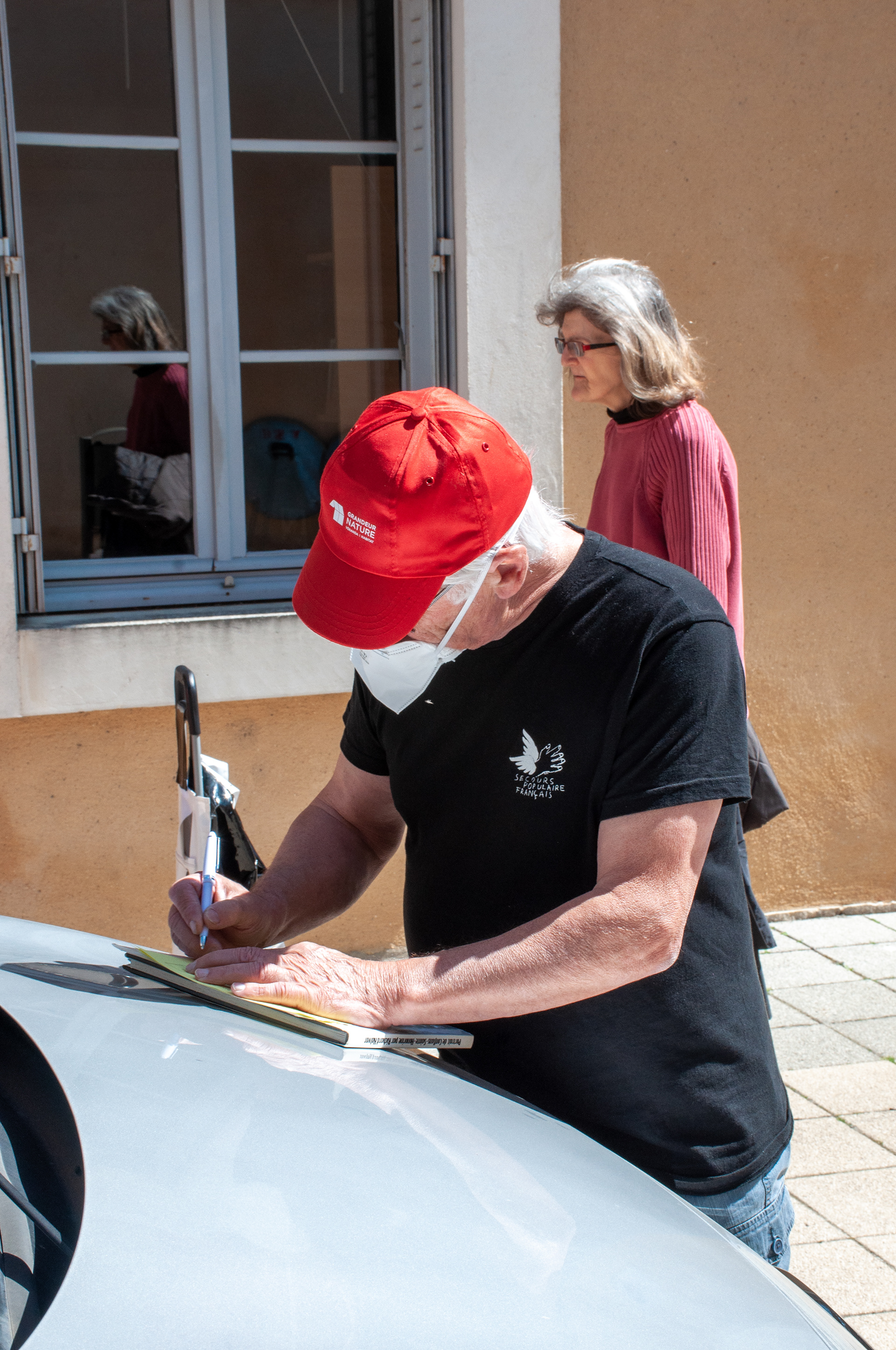 Distribution de colis alimentaires à St Calais, le 22 Avril 2020.