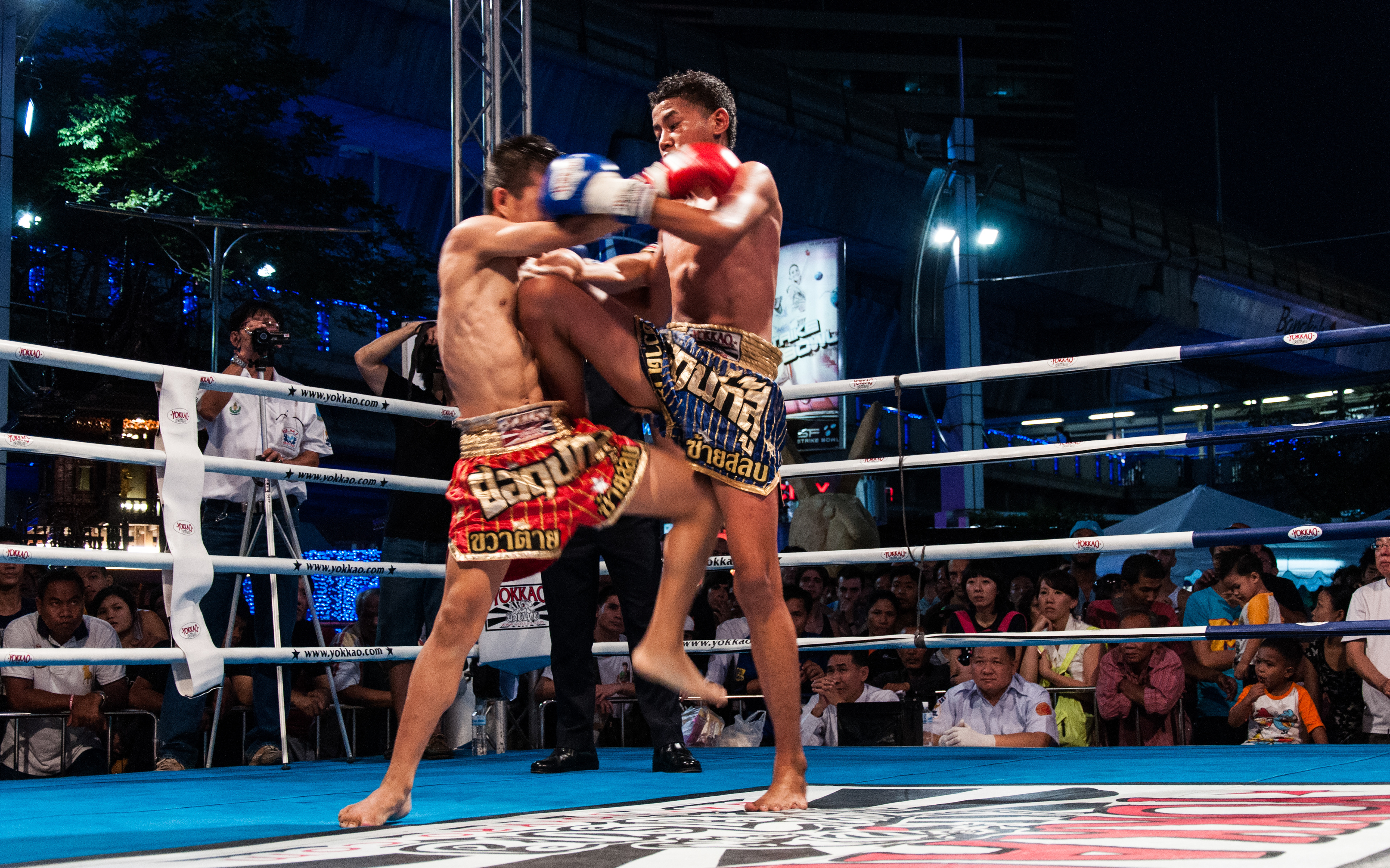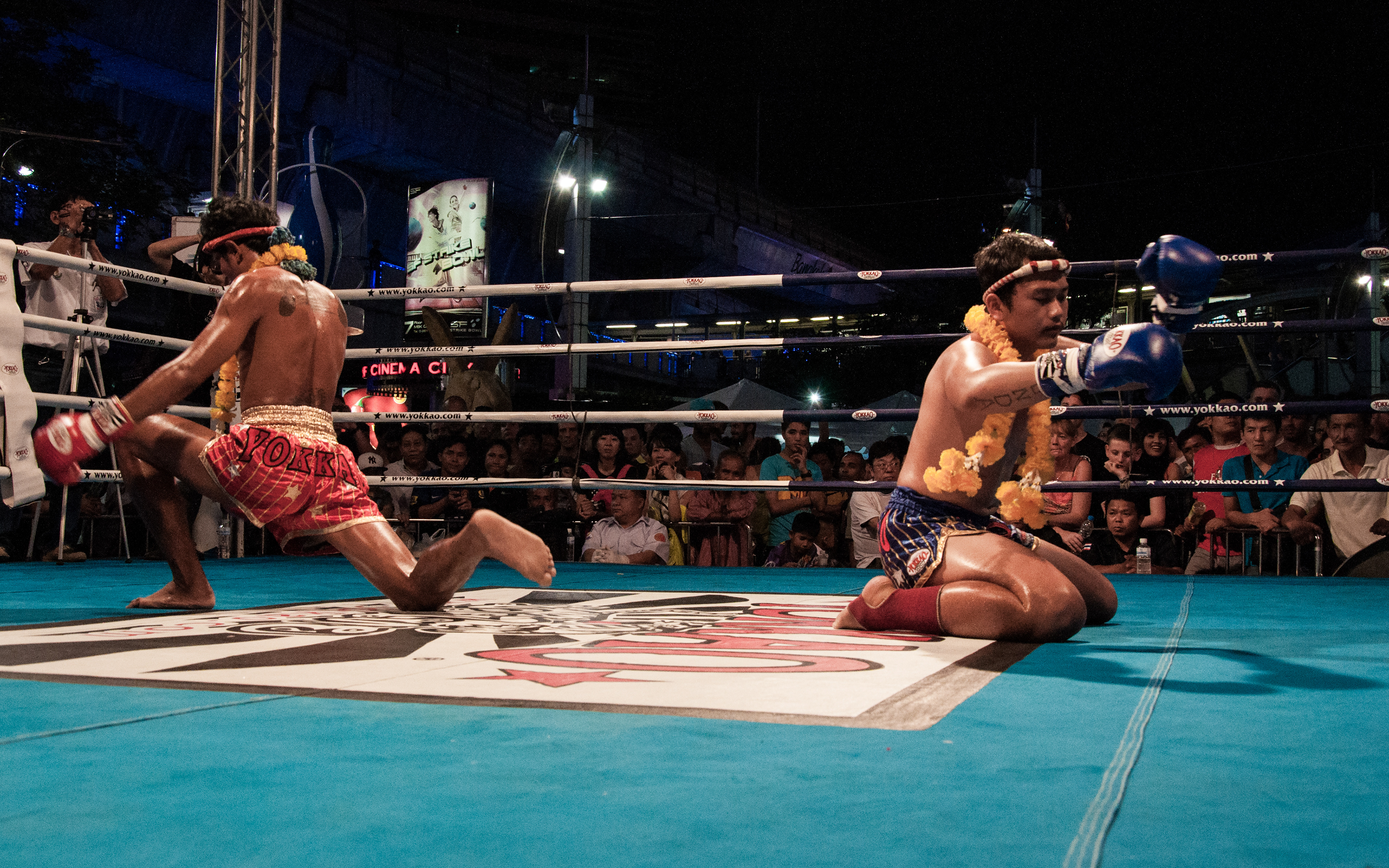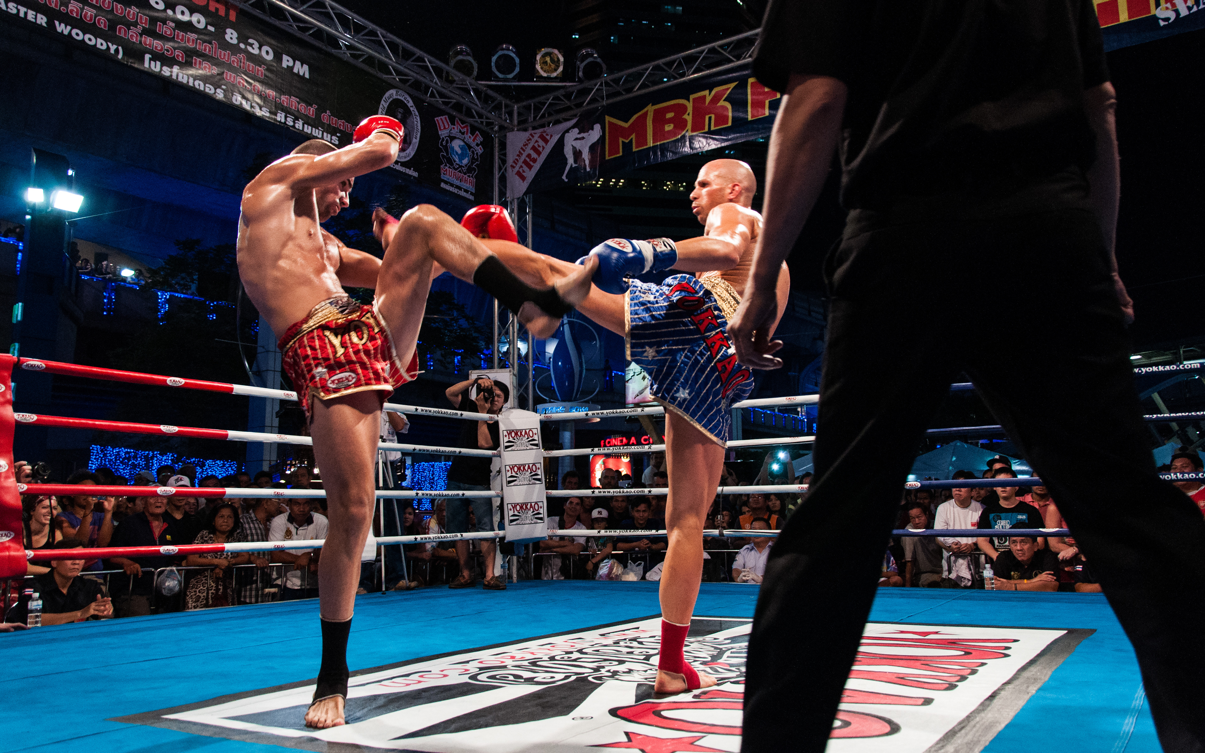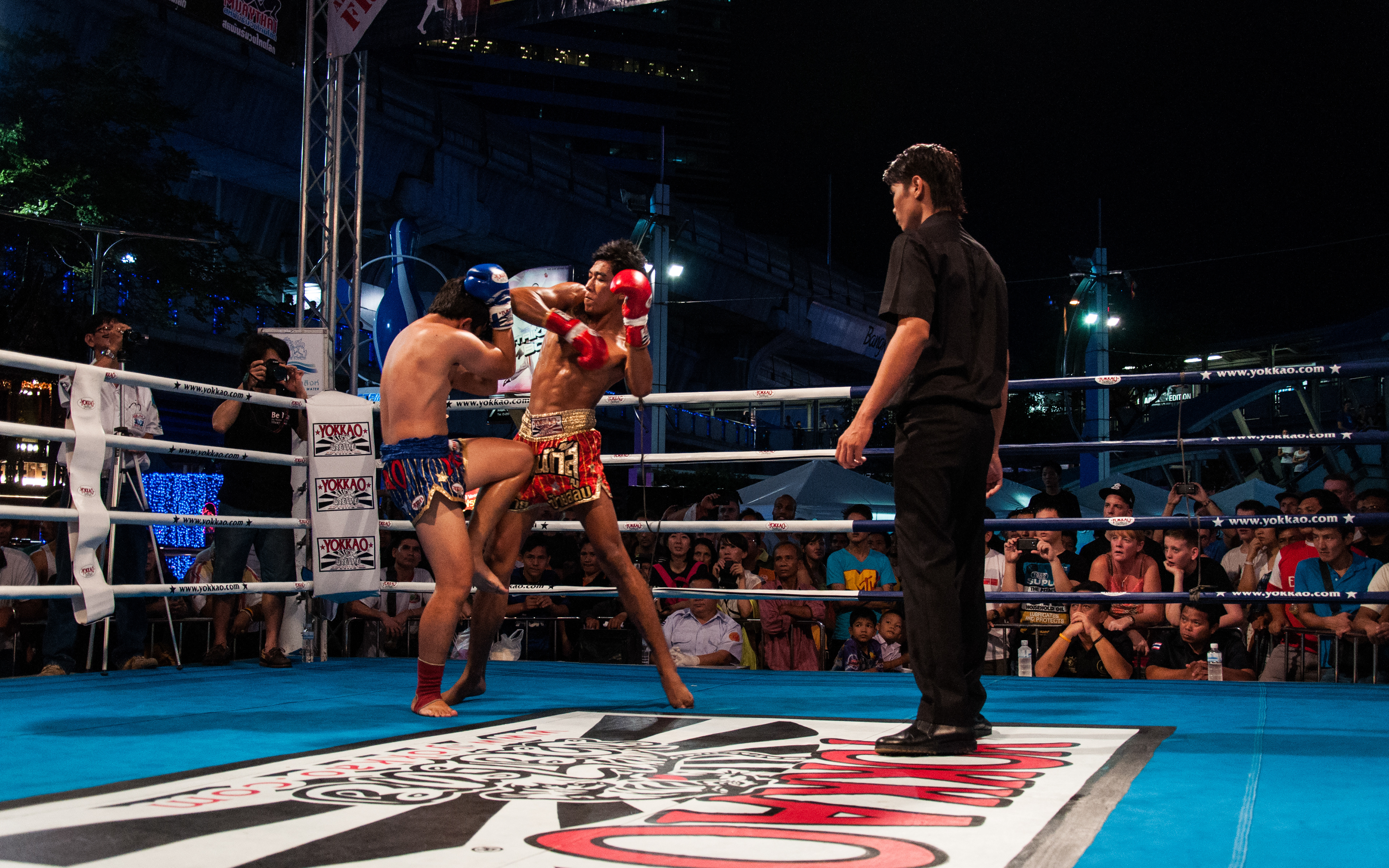 Gala de boxe thaïlandaise devant le centre commercial MBK, à Bangkok.