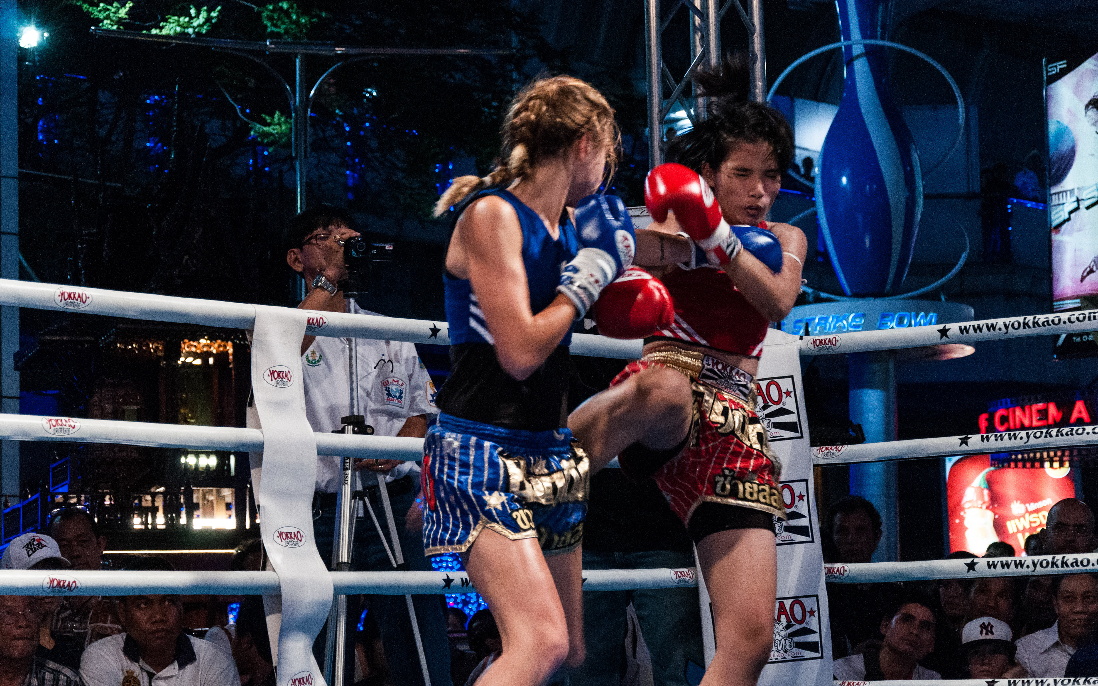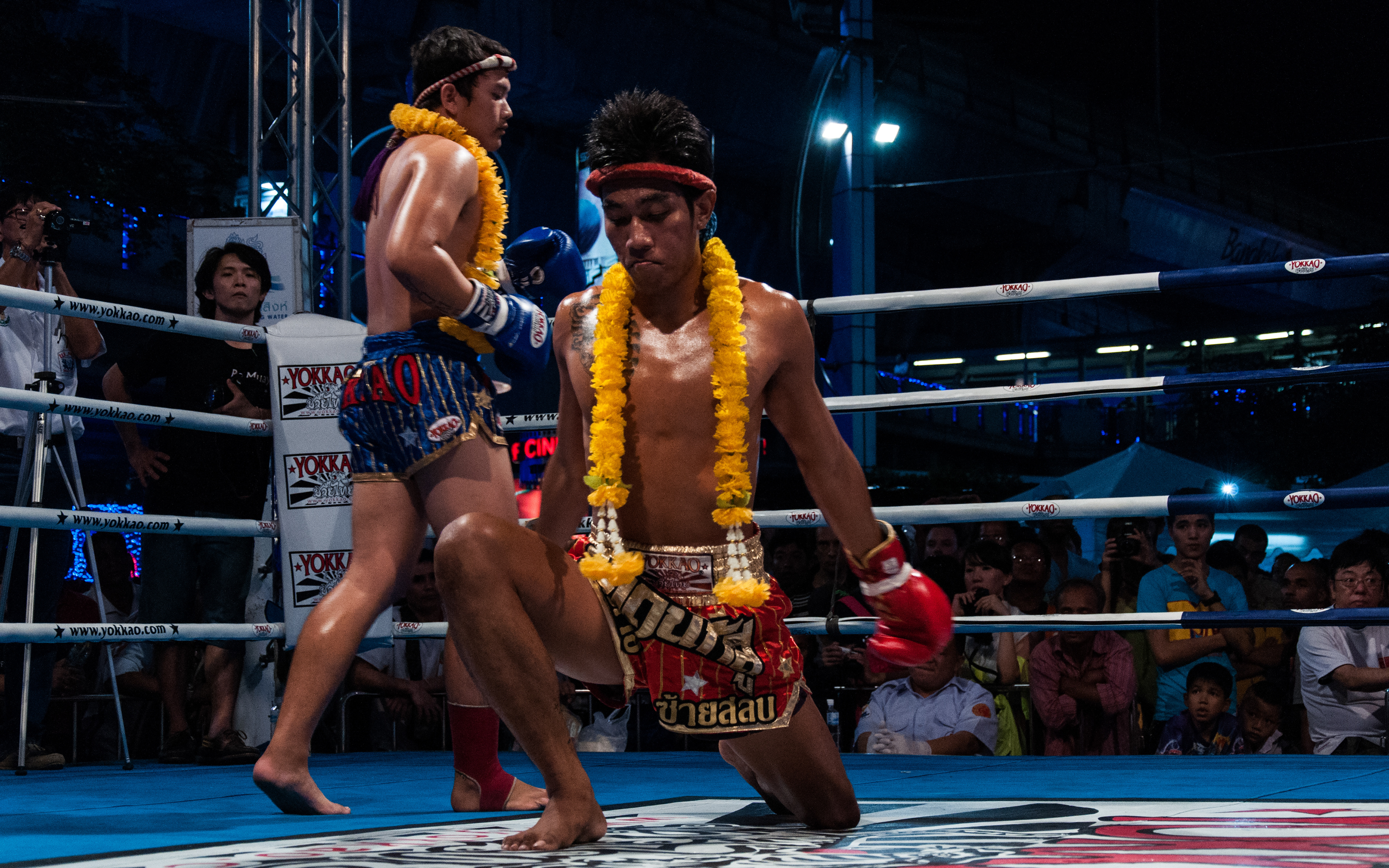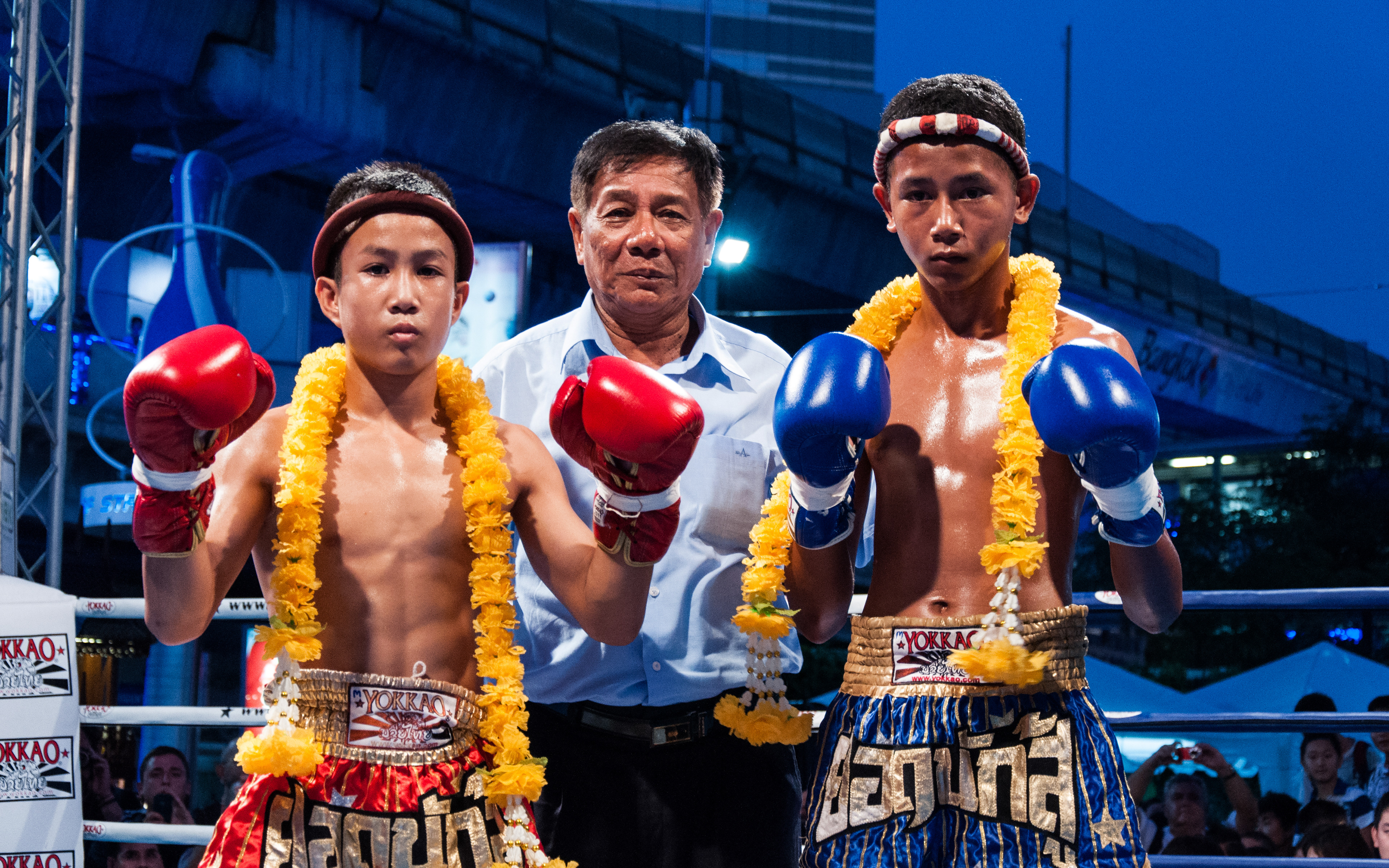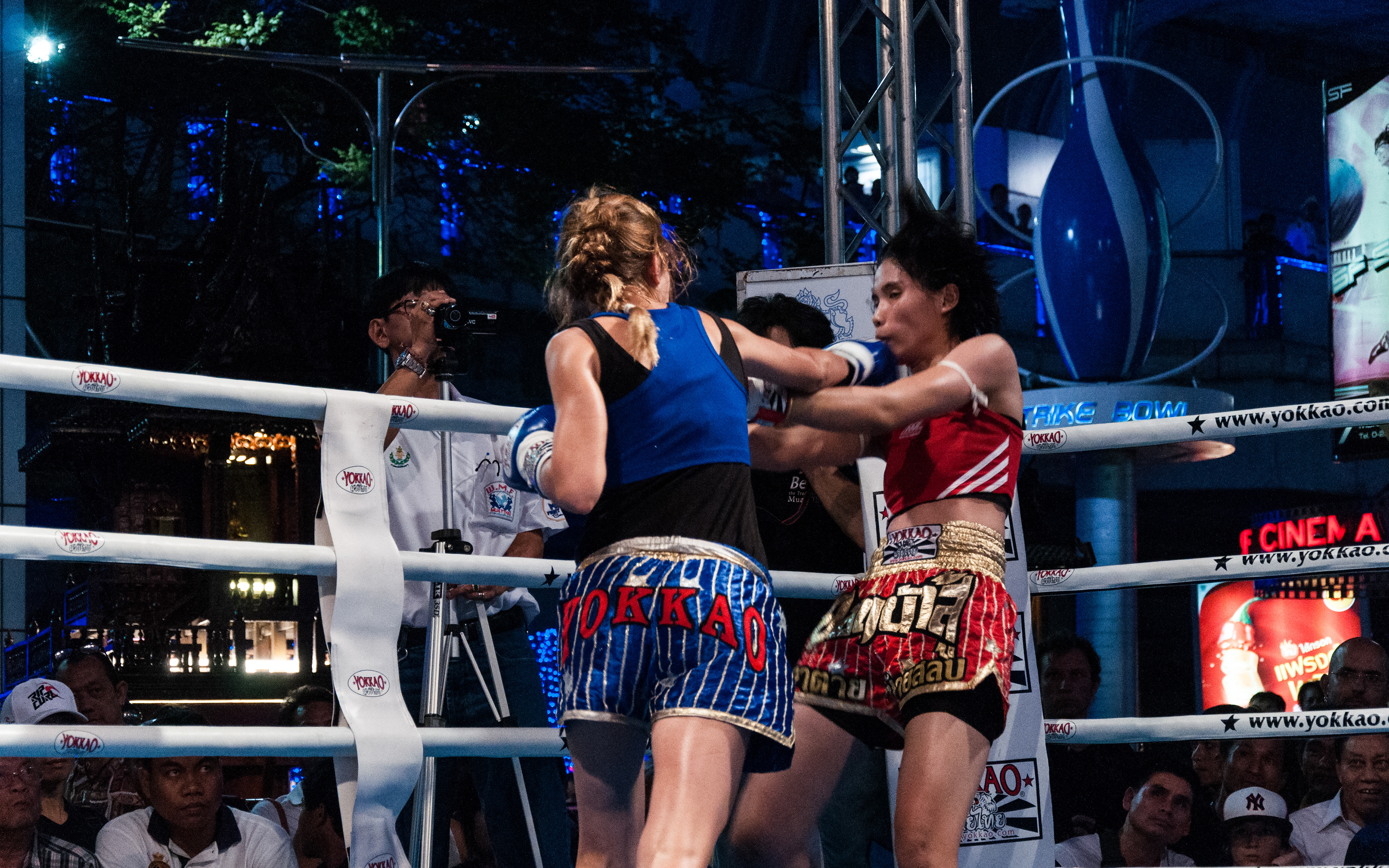 Gala de boxe thaïlandaise devant le centre commercial MBK, à Bangkok.