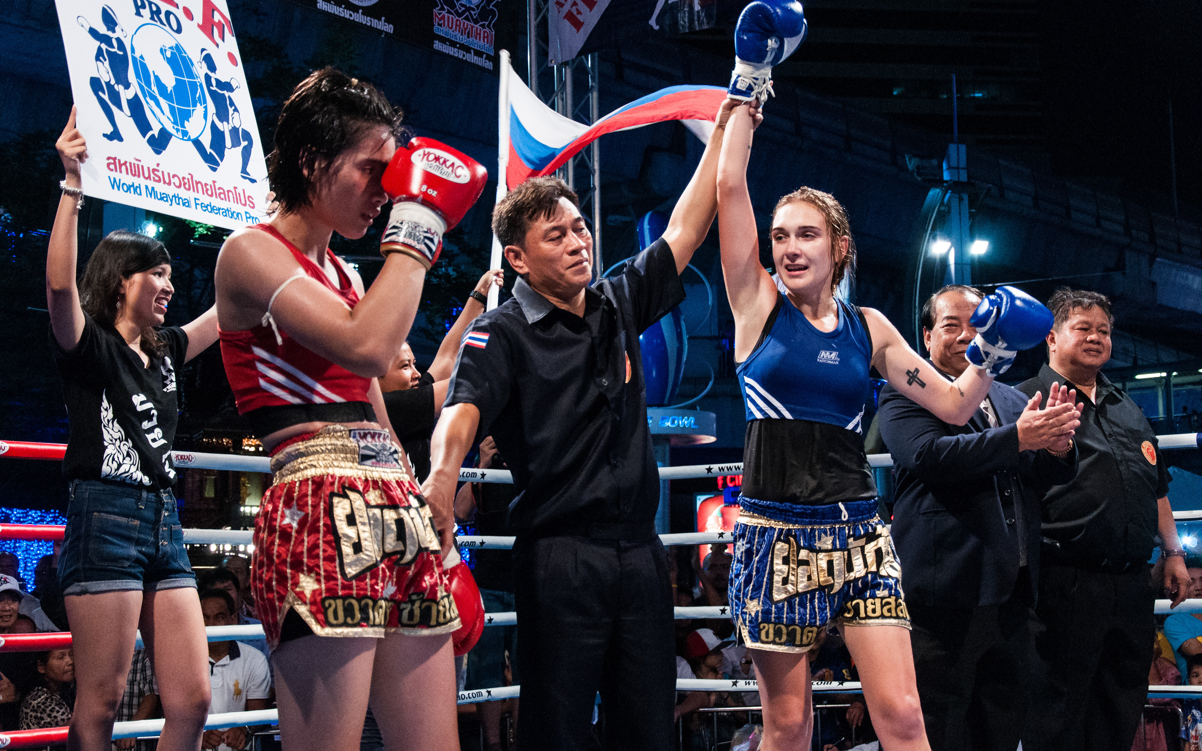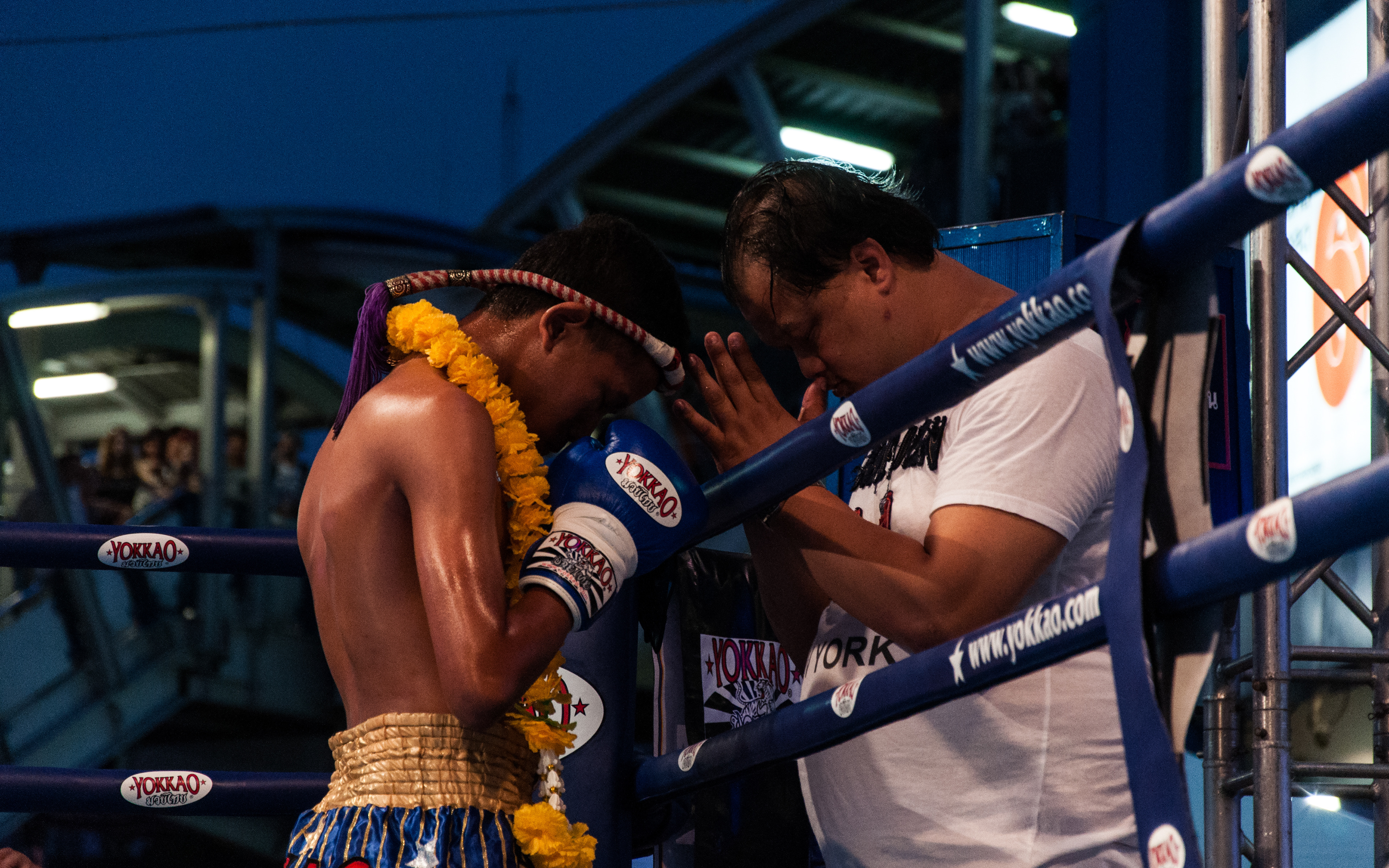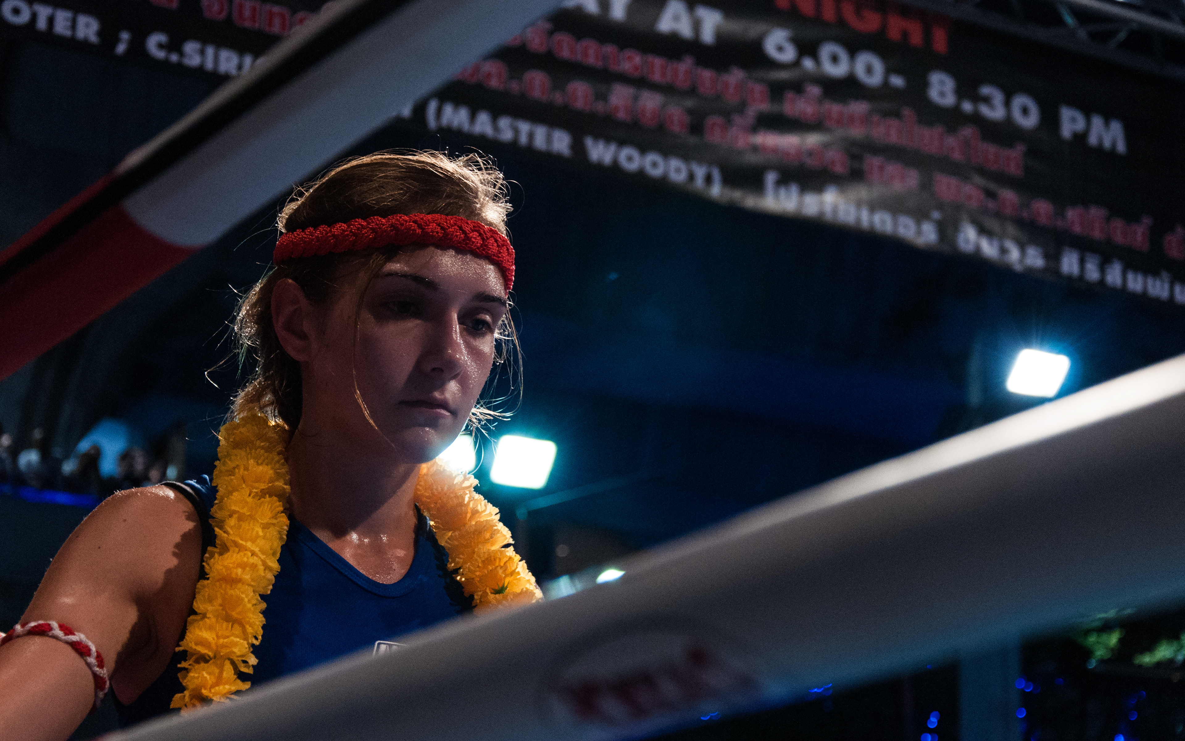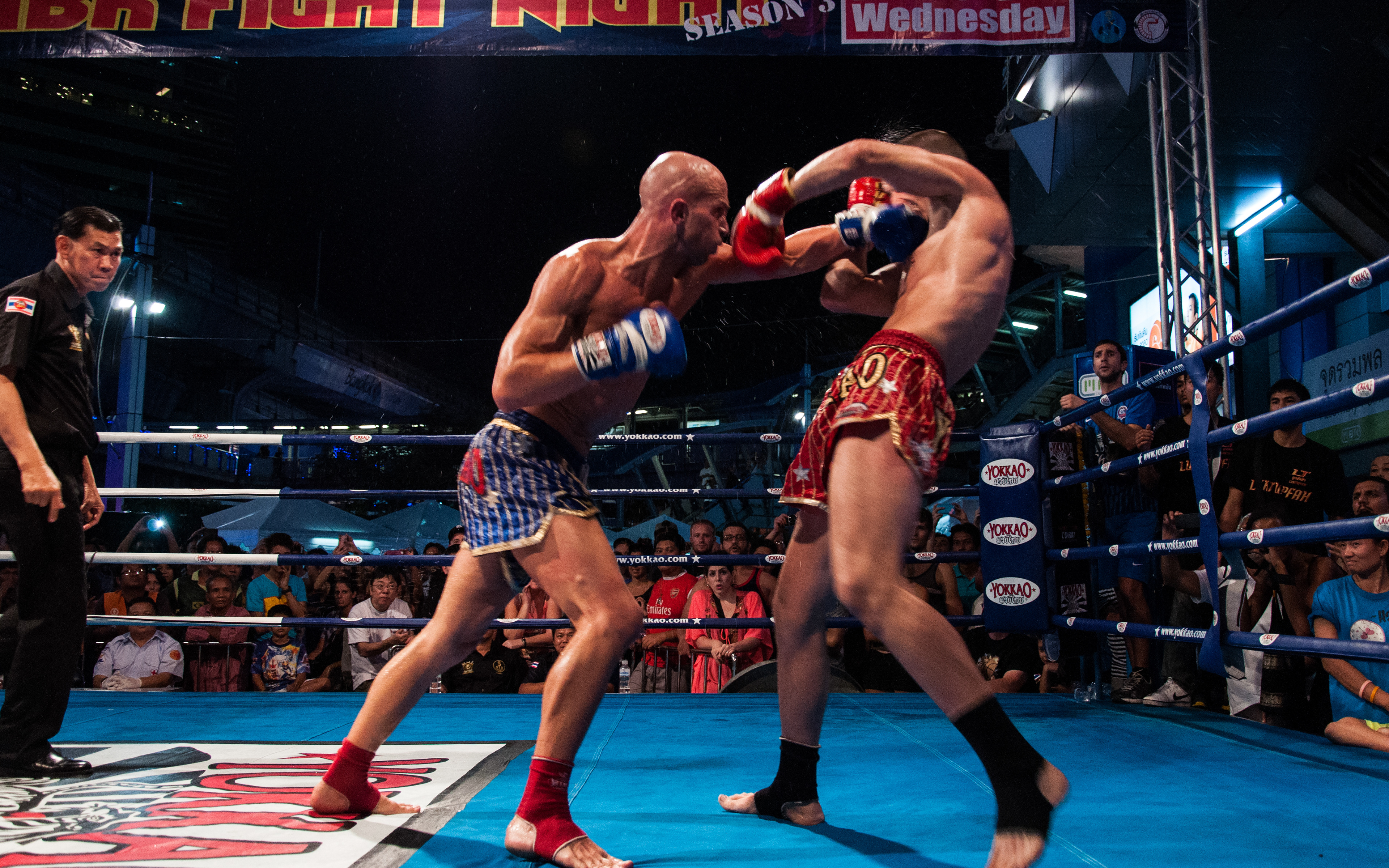 Gala de boxe thaïlandaise devant le centre commercial MBK, à Bangkok.